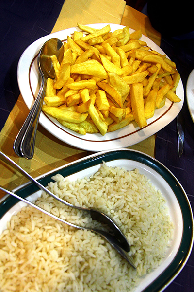 Batata e arroz junto é demais mas vamos fazer como? Estamos habituados, é tradição e sabe bem!
