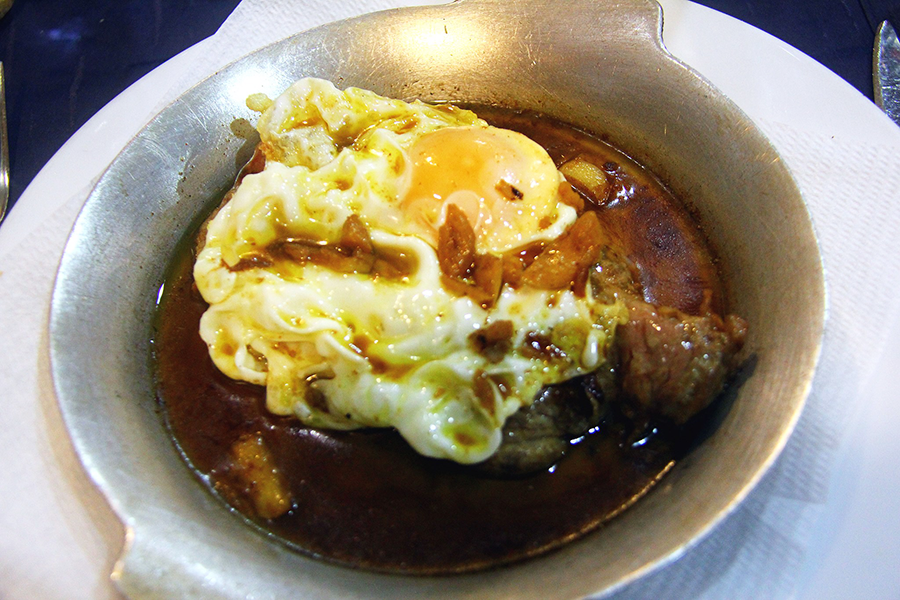 Mas não, atrevidos decidimos ir um pouco mais além. Bife do lombo para todos. O bife era óptimo, alto, meio termo, carne macia, rosadinha e suculenta e com montes de alho que é como eu gosto. Mais o ovo a cavalo.