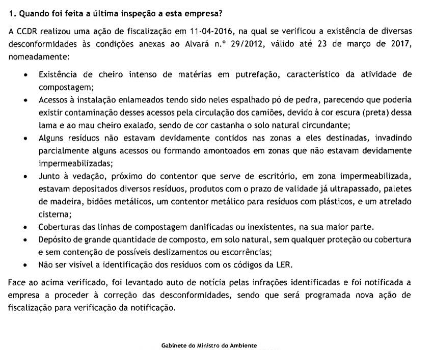 Entretanto, podemos ver a resposta do Ministério da Ambiente a perguntas feitas sobre a Componatura.