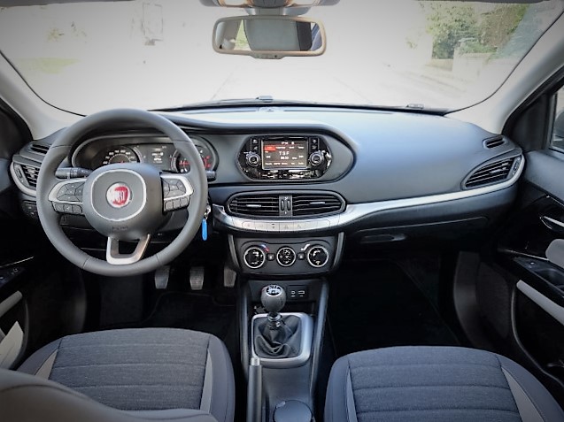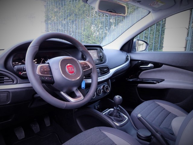 Mal entramos, percebemos que estamos dentro de um Fiat. Os comandos não enganam, como os rotativos para a climatização, assim como o sistema Uconnect com ecrã táctil de 5″, já visto em outros modelos do grupo italiano. O volante também é decalcado da gama 500, com inúmeros botões e respectivas funções.
