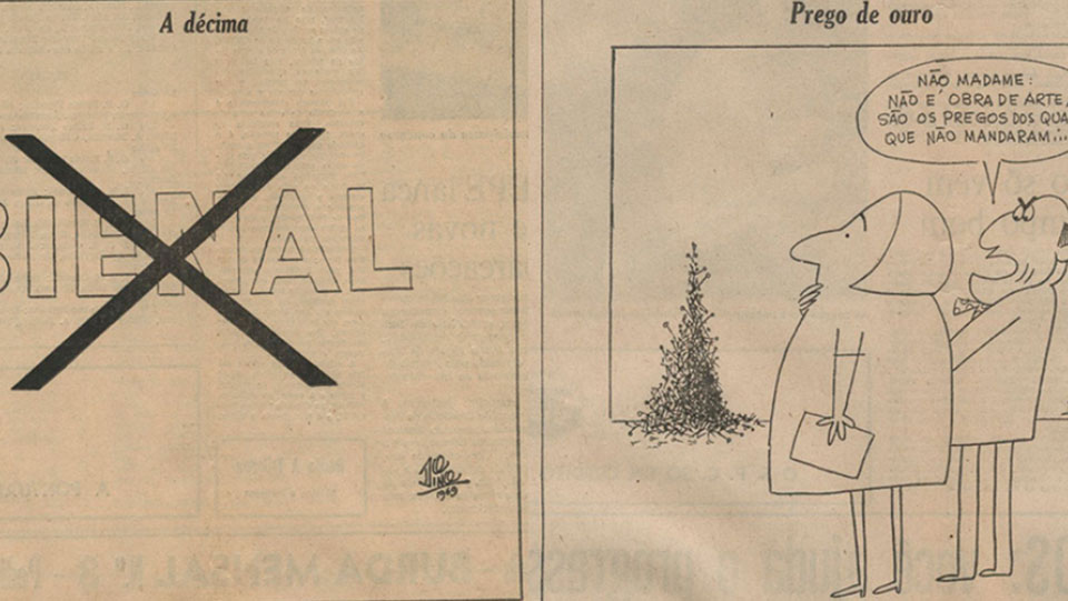Charges de Mino, publicadas em outubro de 1969 no jornal A Tribuna, denunciavam o boicote à do boicote à 10ª Bienal de São Paulo