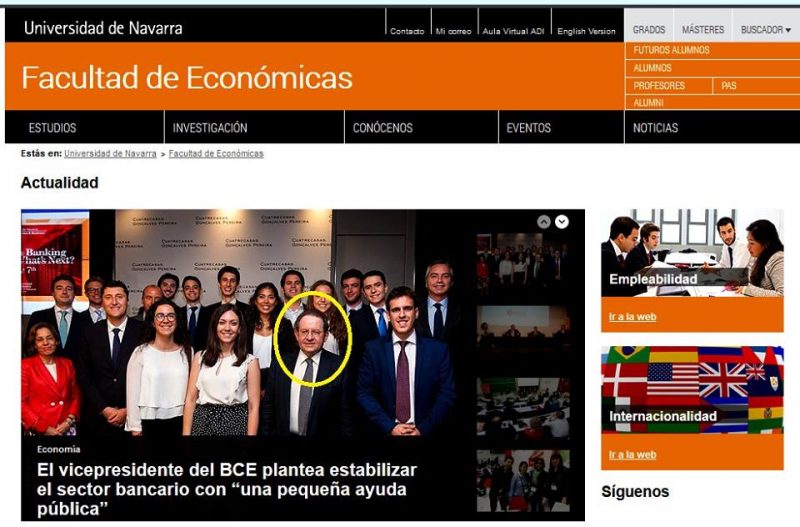 Esta intenção de injectar ainda mais dinheiro público nos bancos privados foi revelada pelo próprio dirigente do BCE durante uma conferência organizada pela Universidade da Opus Dei, vulgo “Universidade de Navarra”, em que Constâncio era convidado.