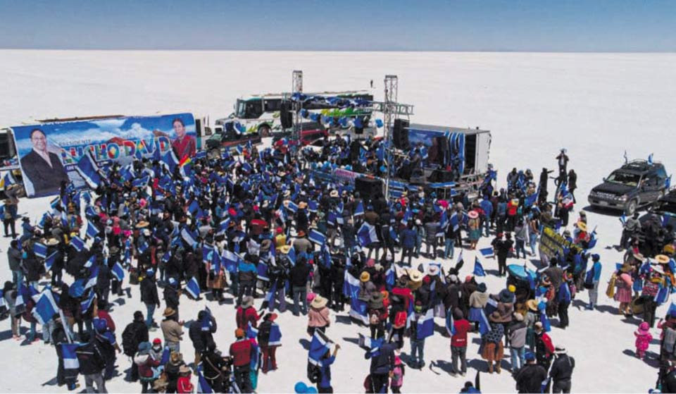 No Salar de Uyuni, o candidato do Movimento Ao Socialismo (MAS) à presidência da Bolívia, conclamou a todos irem às urnas no dia 18 de outubro “em defesa do ouro branco, ameaçado pelas transnacionais”.