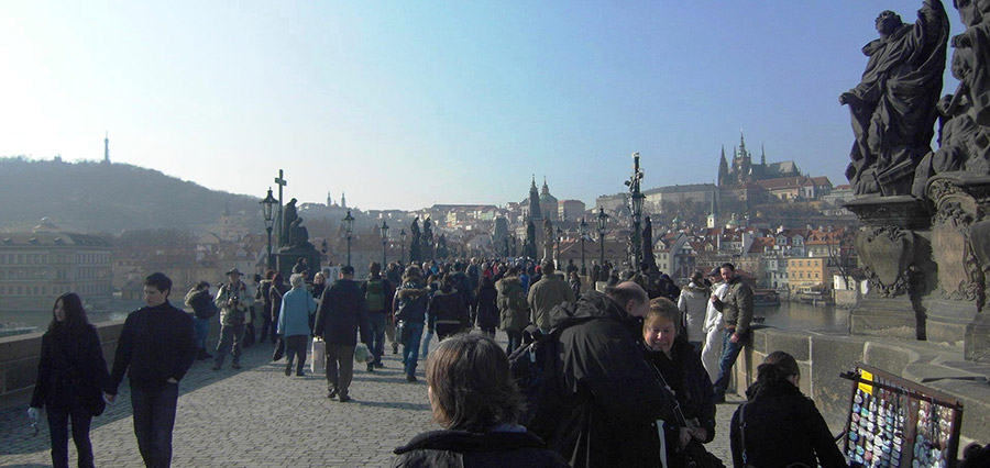 A capital checa respira história por pontes, ruelas, praças e catedrais… e traz memórias do velho Bloco de Leste comunista.A chegada a Praga, com saída de Lisboa pela manhã, pode ser demorada, se o voo fizer escala. Seis ou sete horas horas até sair do aeroporto Ruzyne. Pouco mais de três horas se o voo for directo. Trocar algumas coroas para os transportes e esperar pelo Airport Express, sem apanhar um choque térmico, é o primeiro contacto com esta cidade do Leste europeu, que se anuncia como genuíno museu ao ar livre.