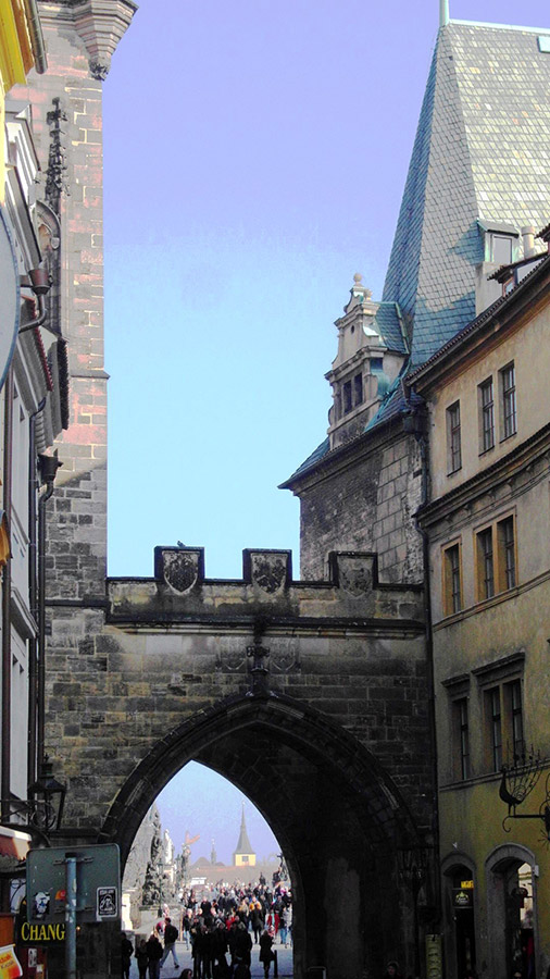 Nas redondezas, em travessa vizinha, de nome viela dourada (Zlatá Ulièka) permanece a casa 22 onde viveu Kafka. Baixar ao bairro pequeno de Malá Strana, onde todas as construções são anteriores ao século XIX, e seguir em direcção ao rio, significa desembocar na famosa Karlúv Most, ou o mesmo será dizer ponte Rei Carlos IV.