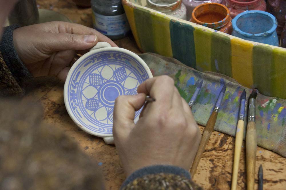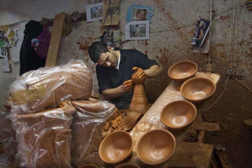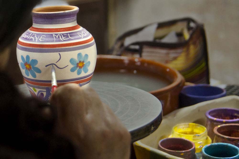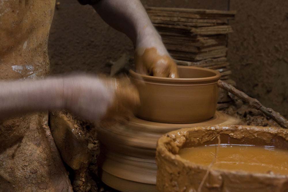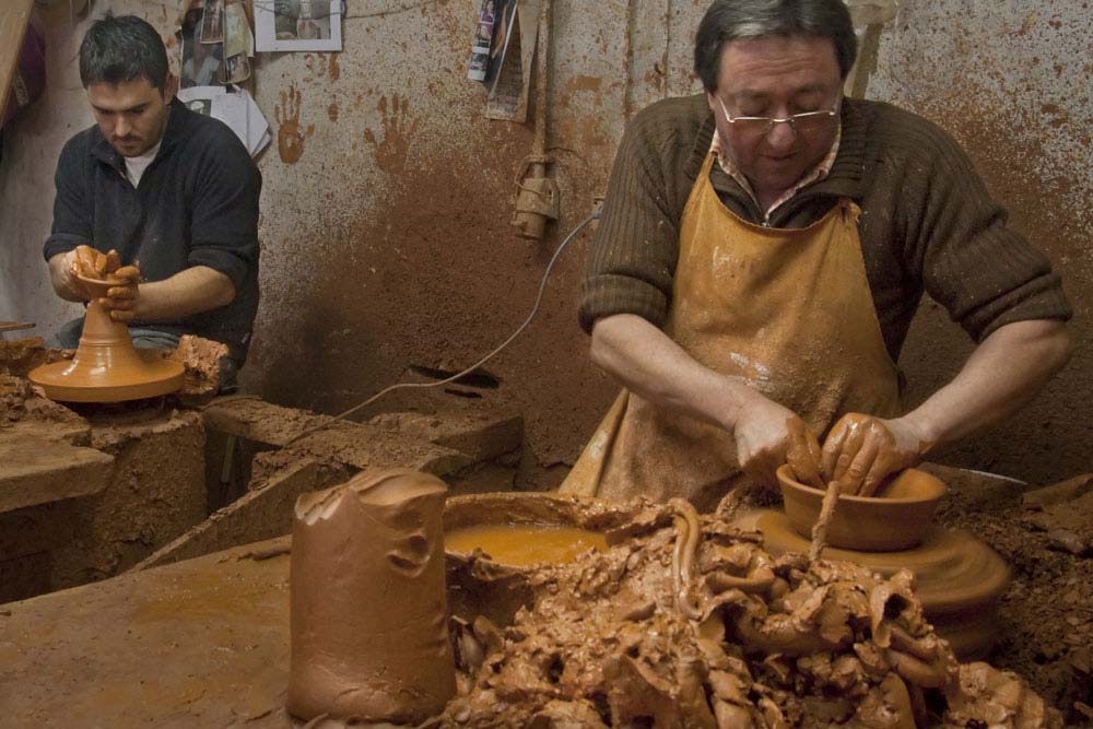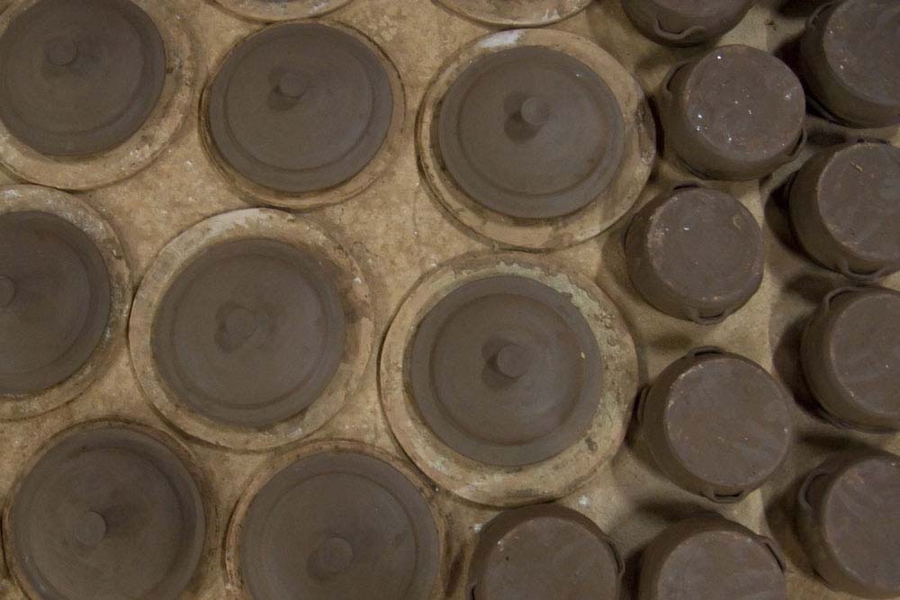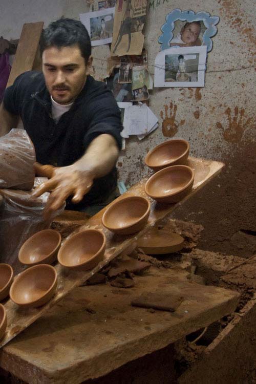 Os tornos devoram blocos de barro, transformados em peças típicas