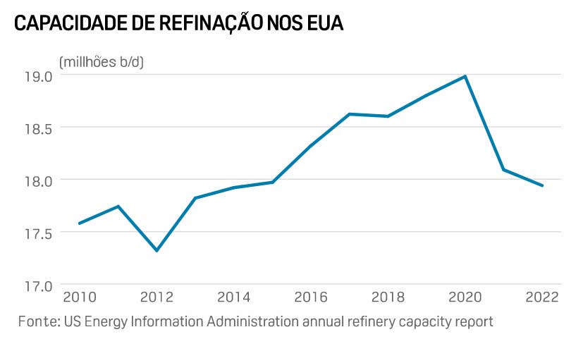 Uma das explicações possíveis para a actual situação prende-se com uma redução da capacidade de refinação norte-americana (desde o início de 2020, a capacidade de produção de combustível nos EUA caiu cerca de 5%, ou seja, mais de um milhão de barris por dia), uma tendência que parece irreversível face à pressão originada nas políticas para contrariar as mudanças climáticas, embora a procura interna por combustíveis continue constante e contra todas as previsões de um futuro repleto de carros eléctricos. Para já o resultado é um abastecimento doméstico de gasolina instável, altamente vulnerável a pânicos de abastecimento que alimenta a inflação e enfurece os eleitores, agravado pela referida redução na capacidade de refinação de uma indústria envelhecida e que implica necessidades de reparação cada vez mais frequentes.