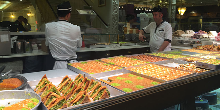 Mas pode provar também os genuínos kebabs locais (com pistachio, por exemplo), em em restaurantes informais, e deixe-se tentar por uma das melhores baclavas acabadas de fazer. Peça para provar e eleja uma baclava diferente por dia.
