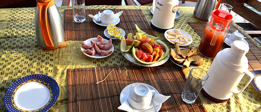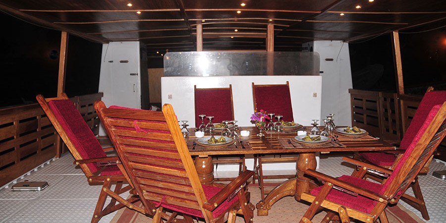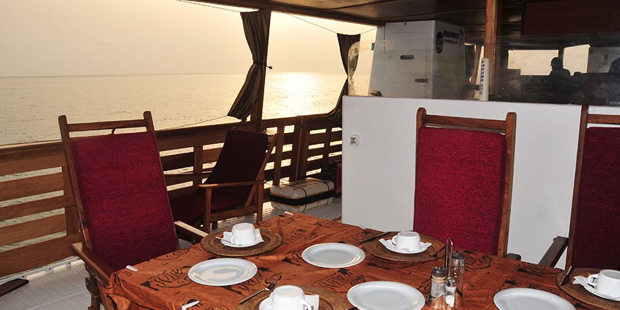 O serviço é assegurado por sete membros da tripulação onde se inclui um cozinheiro que “chega a fazer croissants no meio do Bijagós ou carpaccio de barracuda”. Sem esquecer o serviço de hotelaria e os marinheiros, que acompanham os passageiros aquando das visitas a terra. É uma equipa na qual trabalham juntos há muitos anos.