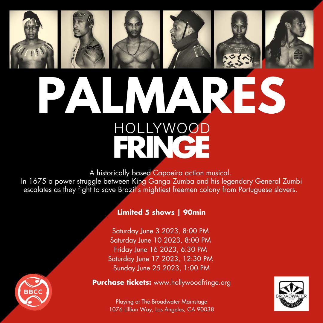 Palmares é parte do Hollywood Fringe Festival de 2023. Concebido anos atrás em outra forma e agora desfrutando de sua última elaboração, ela foi escrita por Vayabobo em uma história por ele mesmo, Maurice Shaw, e Amen Santo, e dirigida por Shaw e Vayabobo. Produzida por Nayla Santo e Earl Cole, ela é apresentada pela Brasil Brasil Cultural Center, uma organização de artes brasileiras em L.A. A coreógrafa é Ashley Monique Blanchard, e o diretor musical é George Karpasitis. O design de som é por Karpasitis e Amen Santo. Os figurinos são por Sanni Diesner. O coordenador de acrobacias críticas é Phillipos Haile.