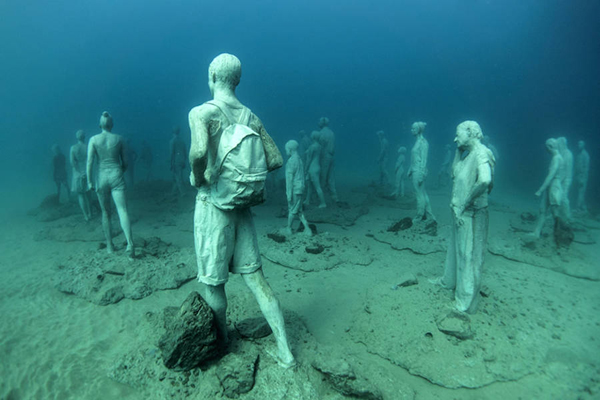 O Museu Atlântico é uma homenagem aos migrantes mortos durante a travessia do mar mediterrâneo. As esculturas são visíveis da superfície mas para as observar com mais atenção será necessário mergulhar.