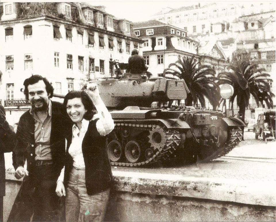 Com José Manuel Galvão Teles, no dia 25 de Abril de 1974 (11 am), no Largo do Corpo Santo, quando ainda nada estava decidido. (Imagem de Micucha Galvão Teles, facultada por Joana Lopes).