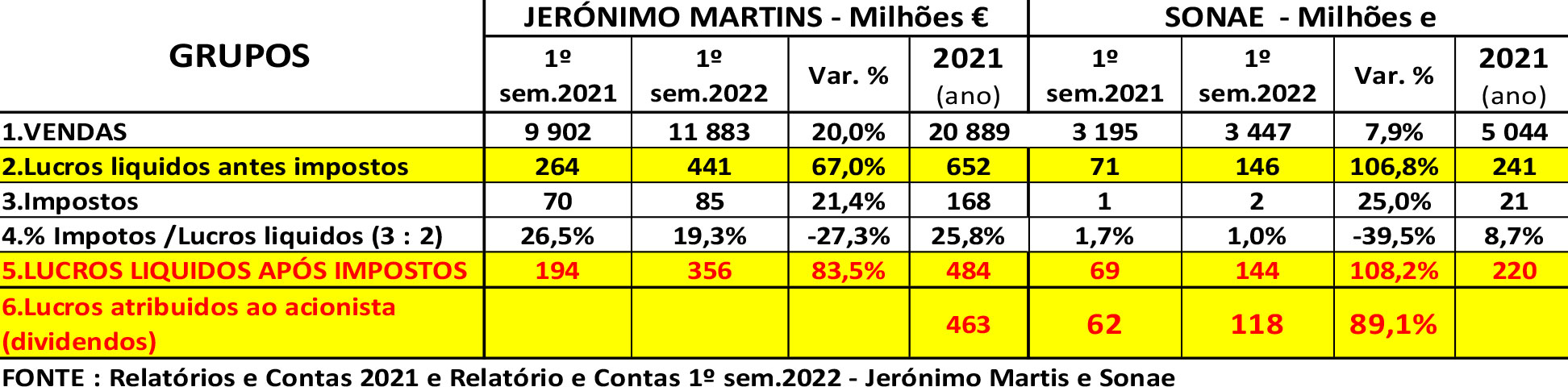No 1º sem.2022 as vendas do grupo Jerónimo Martins, proprietário do PINGO DOCE comparadas com as de igual período de 2021, aumentaram em 20% (subiram de 9902M€ para 11883M€) mas os seus lucros antes de impostos cresceram em 67% (de 264 milhões € para 441 milhões €), e os lucros líquidos após impostos tiveram um aumento de 83,5%, pois passaram de 194 milhões € para 356 milhões € (corresponderam a 73,6% dos lucros de todo o ano de 2021). E isto aconteceu porque, entre o 1ºsem.2021 e o 1º sem.2022, os lucros antes de impostos aumentaram em 177 milhões € (de 264M€ para 441M€), enquanto os impostos pagos pela Jerónimo Martins subiram apenas 15 milhões € (passaram de 70M€ para 85M€). E o governo pretende reduzir brutalmente o poder de salários e pensões, mas nada faz para por cobro a este escândalo, a não a ser que a CE ordene.