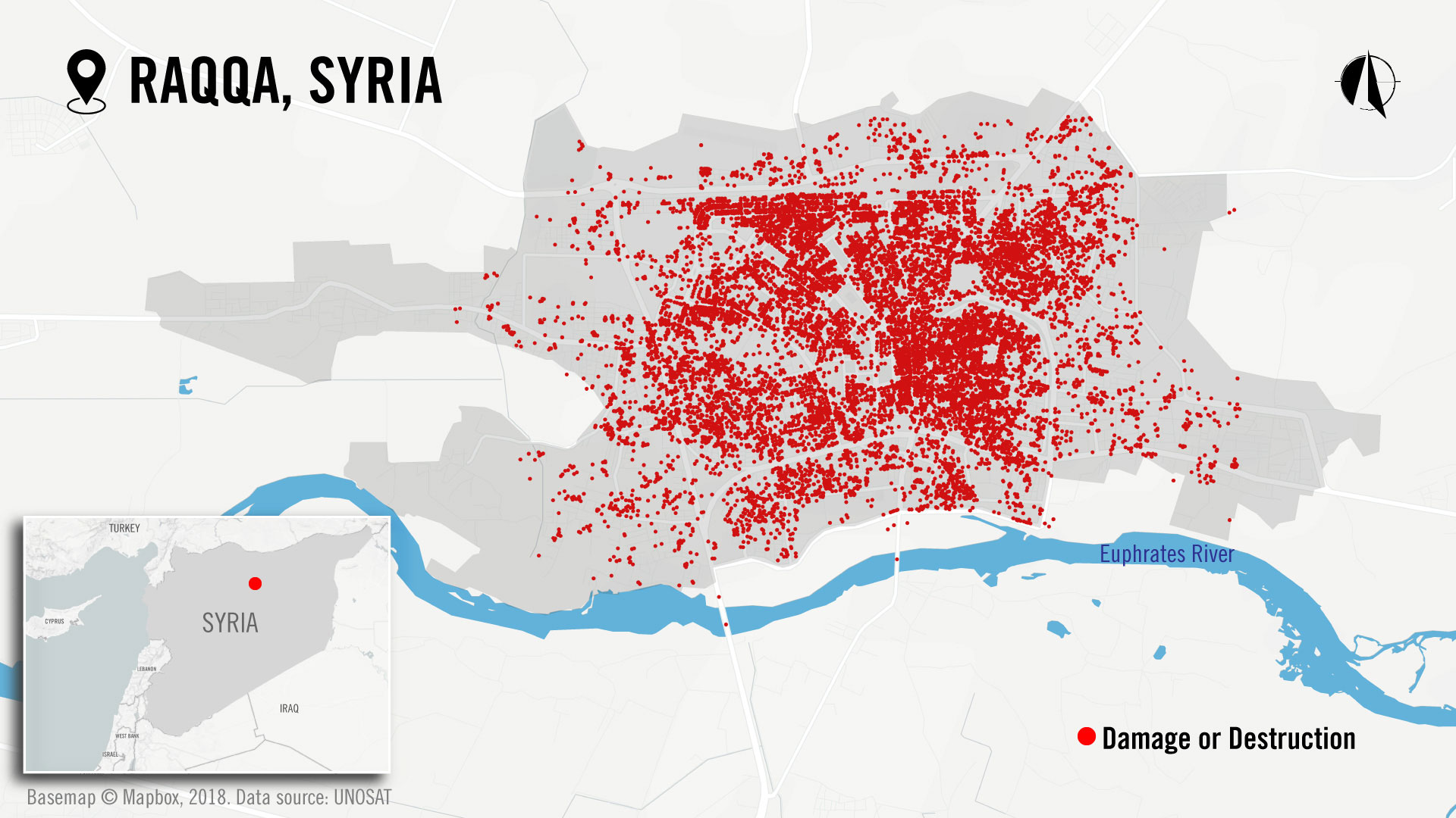 O trabalho de investigação no terreno e análise realizado pela Amnistia Internacional após as batalhas terem terminado, em Outubro de 2017, trouxe à luz provas convincentes de aparentes violações da lei humanitária internacional (as leis da guerra) por parte da coligação liderada pelos EUA. E fizeram com que a coligação revisse as suas estatísticas sobre as mortes de civis, de 23 para mais de 100 – um aumento de 300%.