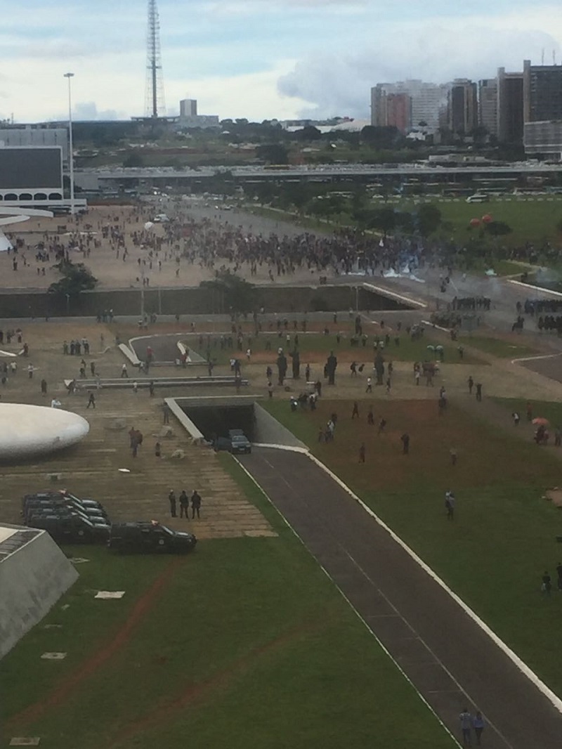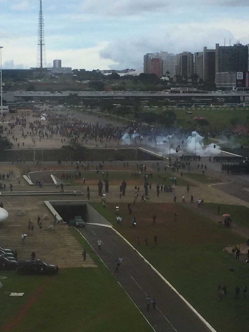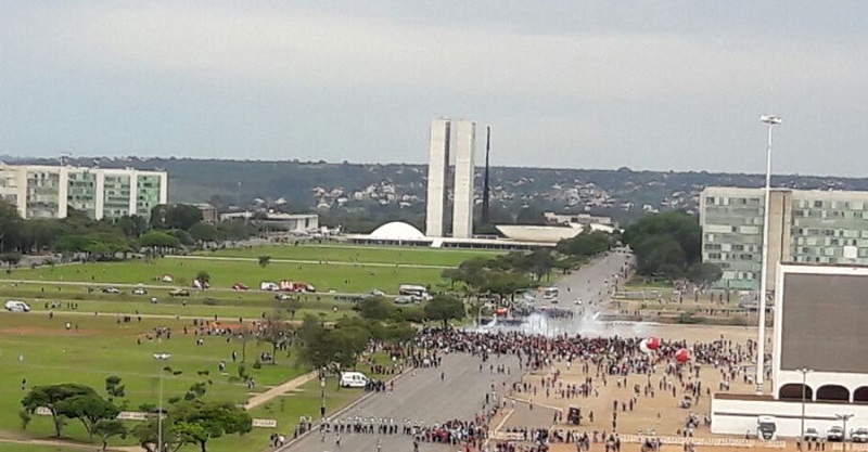 A manifestação estava ainda no início quando forças policiais barraram o avanço dos manifestantes em direcção ao edifício do Congresso Nacional via Eixo Monumental. “Mais uma vez, a repressão imposta pela Polícia Militar aos trabalhadores e estudantes foi violenta”, conforme relata a Mídia Ninja. Que acrescenta, “o direito à livre manifestação e ao direito de ir e vir, constitucionalmente assegurados, correm perigo no governo Temer”.