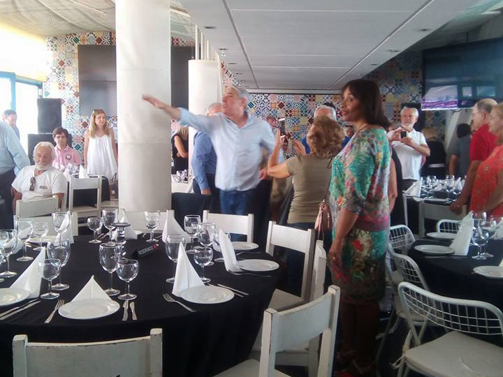 Com os meus botões pensei: estou frito! O master mind do crime organizado está rodeado dos seus prosélitos mais impiedosos. Por este andar não chego vivo à sobremesa! Fiquei sentado mesmo em frente ao “chefe” e, estrategicamente, entre duas das perigosas organizadoras do evento. Rezei as que pensava serem as minhas derradeiras preces enquanto olhava em redor temendo ver a cada canto sinistras figuras, capazes de me degolar ao mais pequeno gesto ou palavra imprudente.